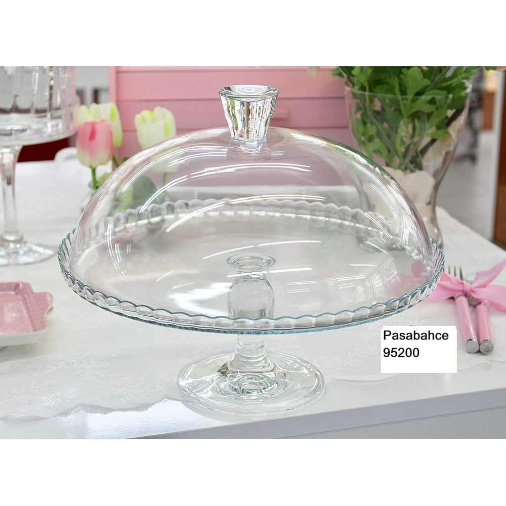 Cake Plate with Dome Footed Pastry Service Stand Wide Glass Serving ...